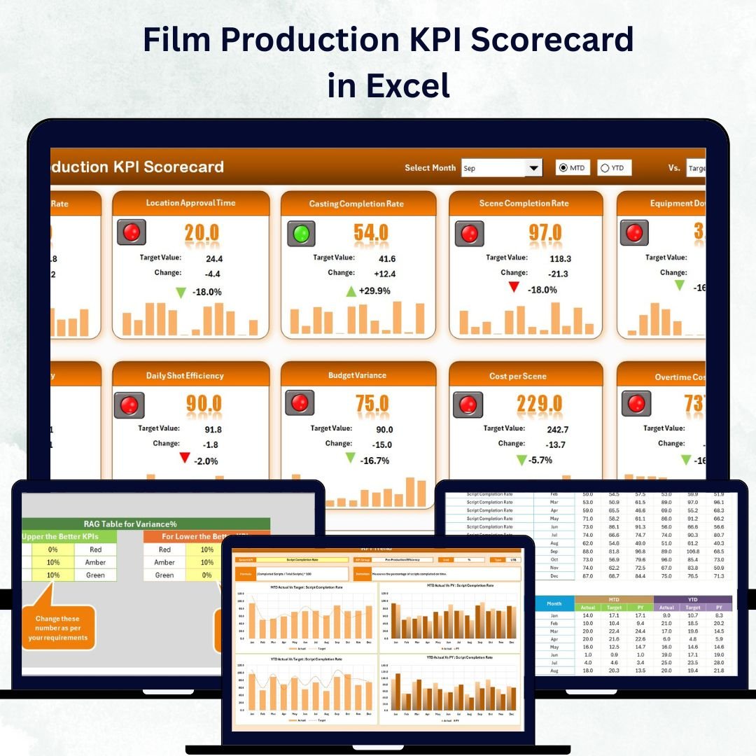 📂 What’s Inside the Film Production KPI Scorecard in Excel