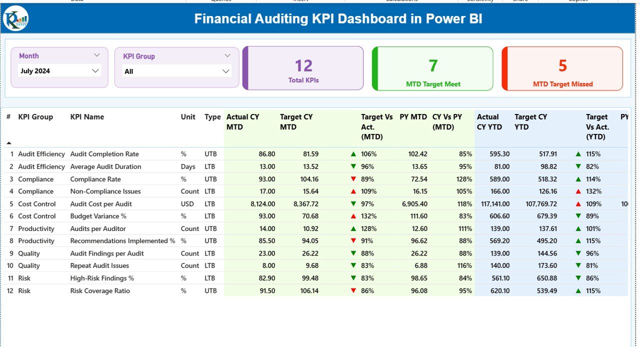 Filter data easily by Month and KPI Group to focus on specific audit areas.