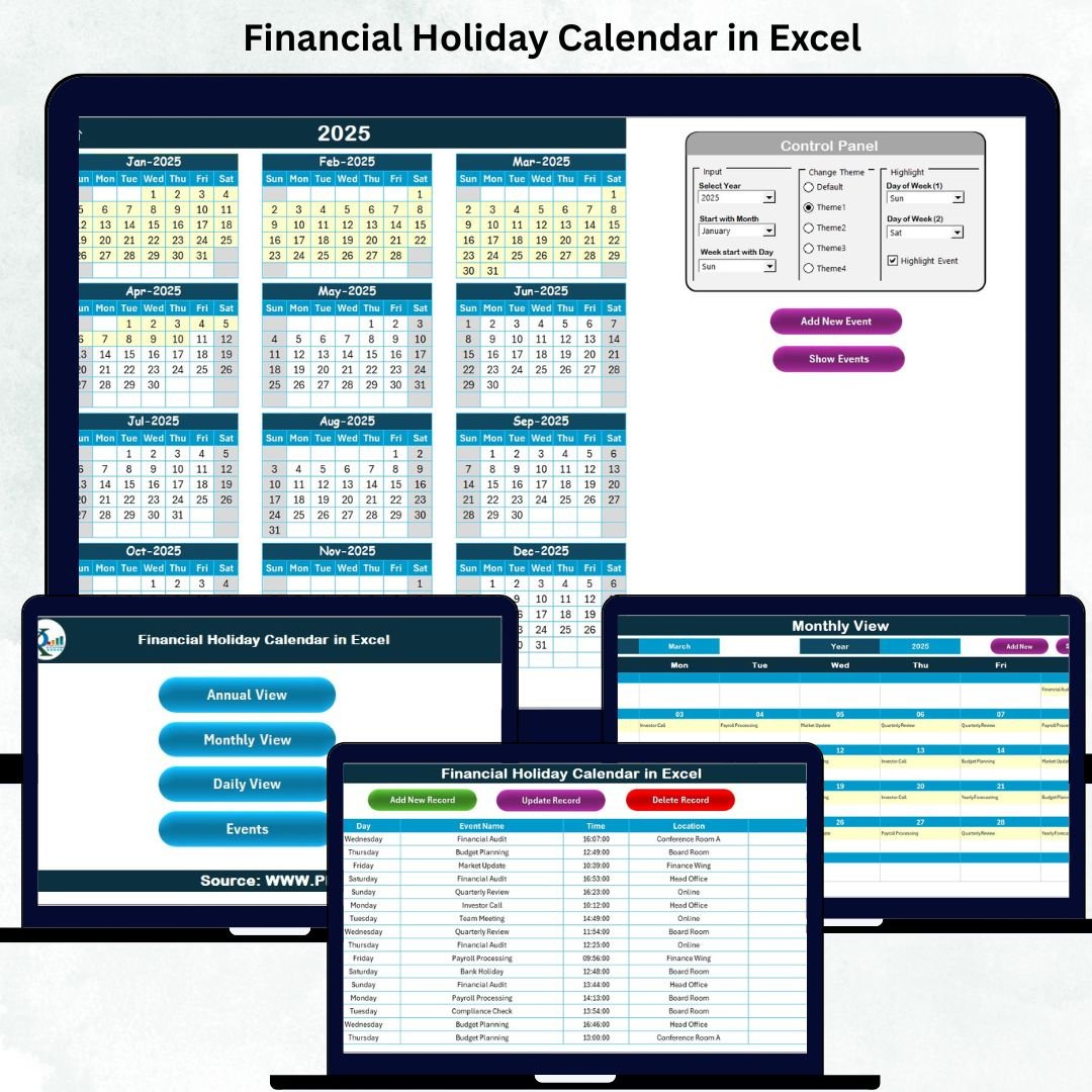 A well-organized financial year starts with a clear, structured, and reliable calendar. If your finance team struggles with scattered dates, missed deadlines, and last-minute rushes, the Financial Holiday Calendar in Excel is the perfect solution. This powerful and easy-to-use Excel template keeps every important holiday, financial event, and business deadline in one place—so your team stays aligned and nothing slips through the cracks. 📅✨