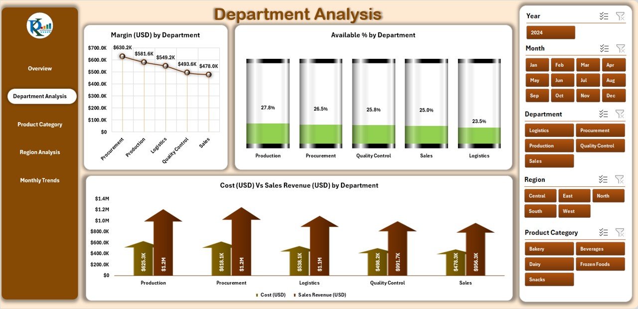 Department Analysis – Focused view of cost, revenue, availability %, and margin contribution.