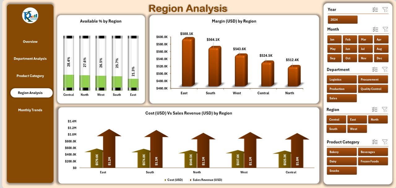 Region Analysis – Insights into availability, margins, and cost efficiency by region.