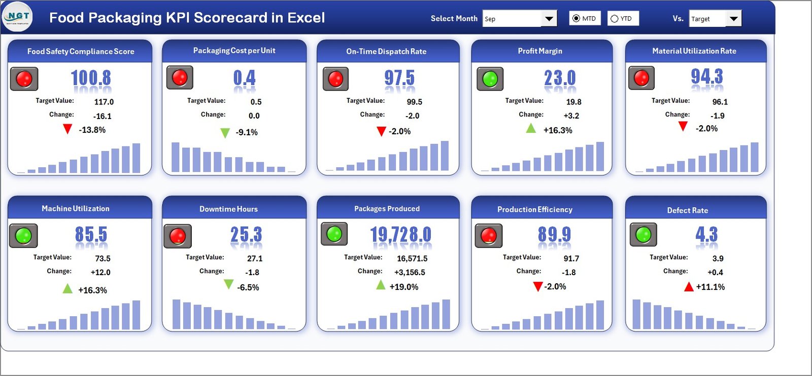 📦 What’s Inside the Food Packaging KPI Scorecard in Excel