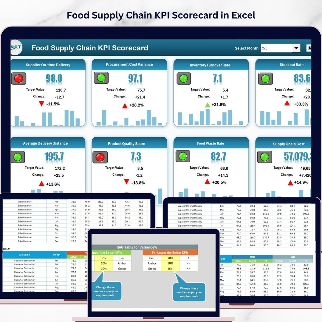Getting started with the Food Supply Chain KPI Scorecard is straightforward. Begin by entering your KPI data into the Input Data Sheet, including actual results and target values. Use the KPI Definition Sheet to add or modify KPIs according to your specific supply chain parameters.