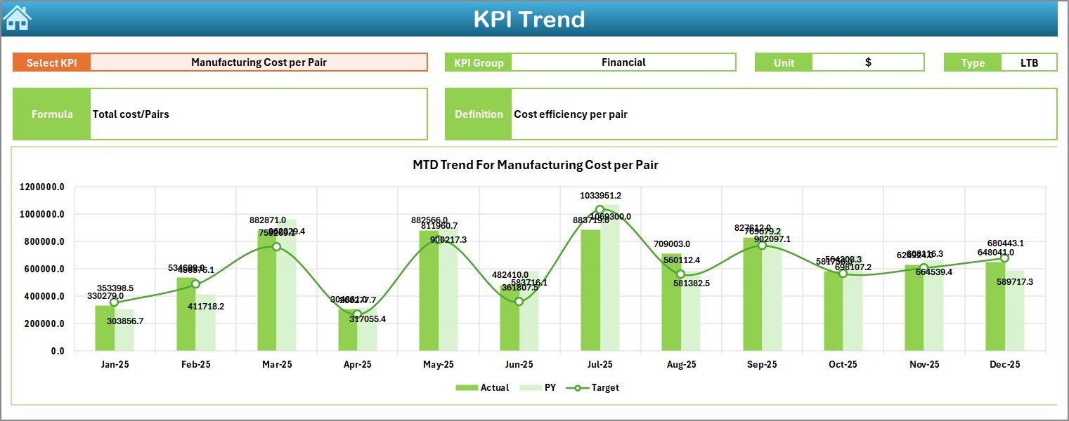 This ready-to-use Excel dashboard helps footwear manufacturers improve productivity, reduce defects, and optimize operations without investing in expensive analytics software.