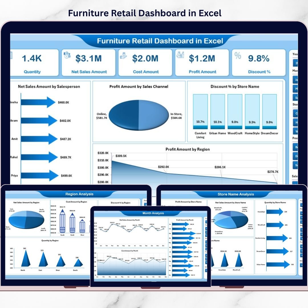 Gain full control over sales, profit, and store performance with the Furniture Retail Dashboard in Excel 🪑📊