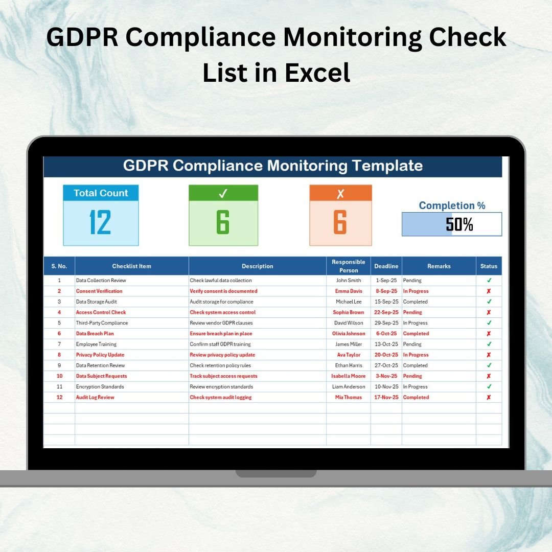 In today’s data-driven world, protecting customer information is not optional — it’s a legal requirement. With the EU’s GDPR Compliance Monitoring Check List in Excel in place, businesses across industries must ensure transparency, accountability, and security in how they manage personal data.