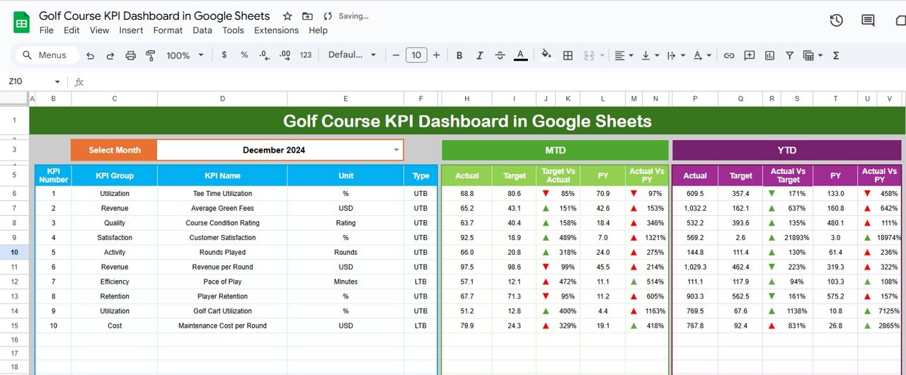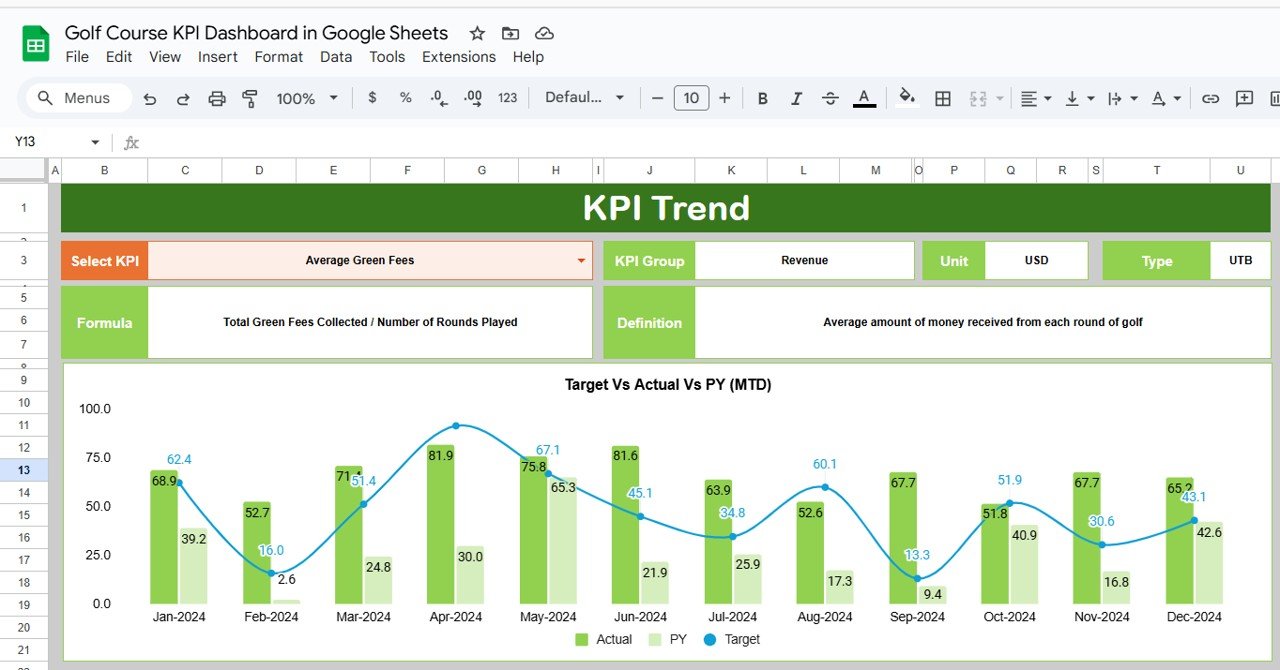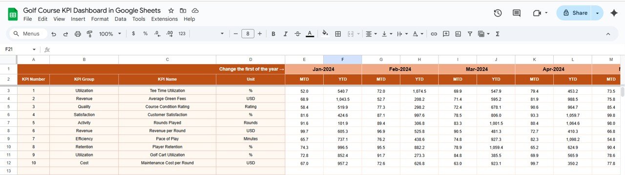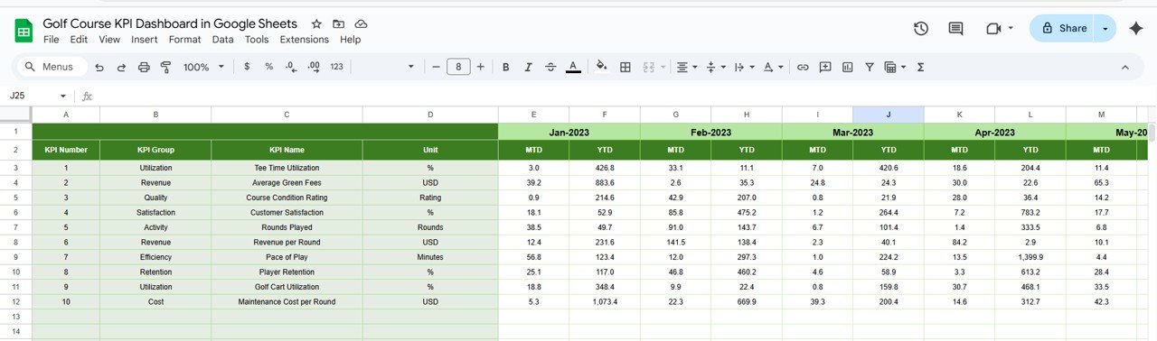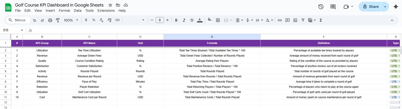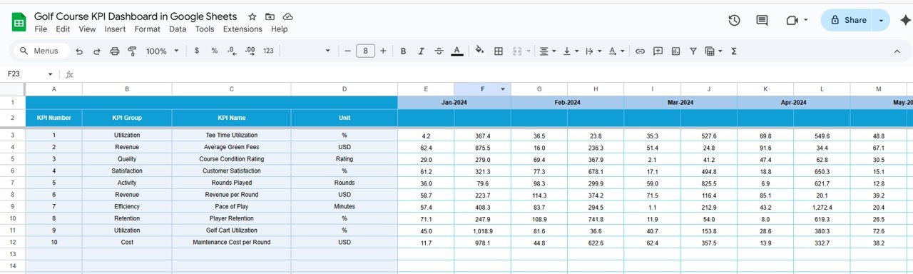 With the Golf Course KPI Dashboard in Google Sheets, managers can boost revenue, improve customer satisfaction, and optimize operations, all while keeping performance tracking simple and transparent.
