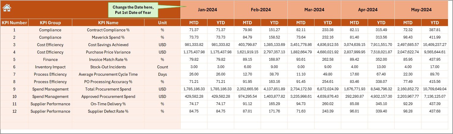 1️⃣ Enter actual procurement values in the Actual Sheet