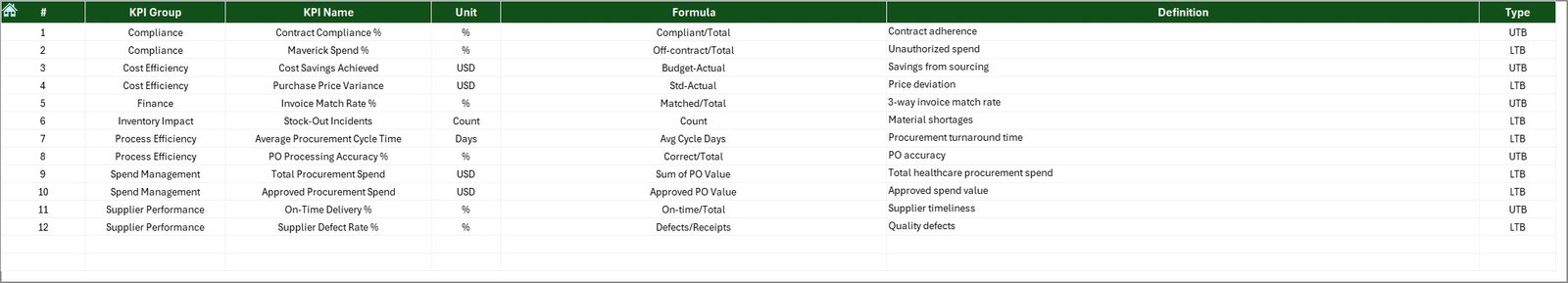 📊 What’s Inside the Health Procurement KPI Dashboard