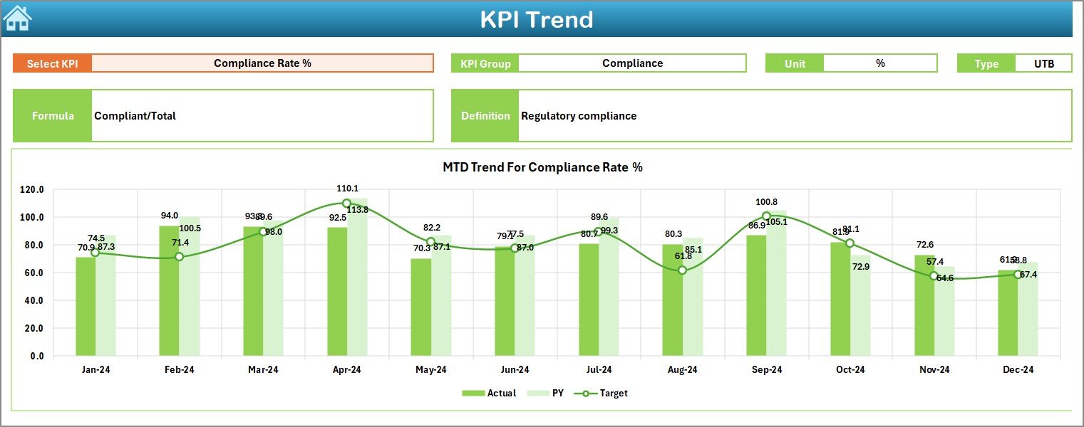 📈 Trend Sheet – Shows KPI trends with Actual, Target, and Previous Year charts