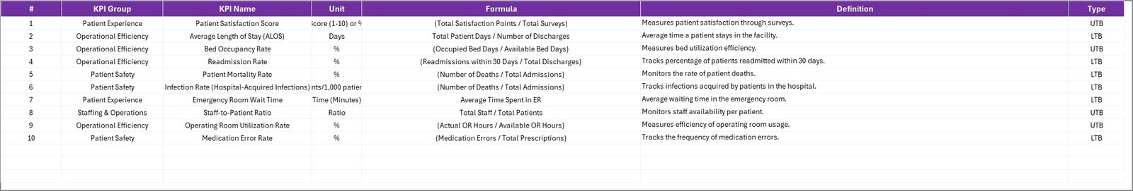 4. KPI Definition Sheet 📖 – A built-in glossary of KPIs that ensures consistency and clarity for all users.