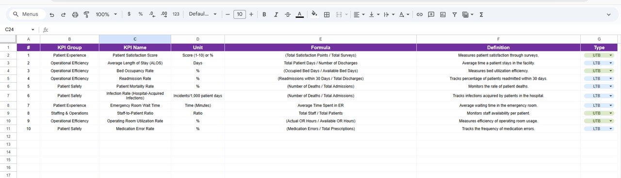🏥 Key Features of the Healthcare KPI Scorecard in Google Sheets