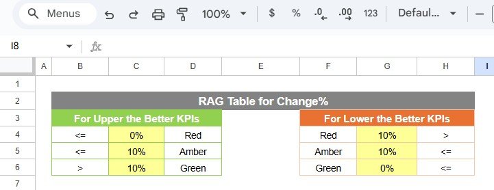 This sheet acts as the KPI master reference, ensuring consistency across teams.