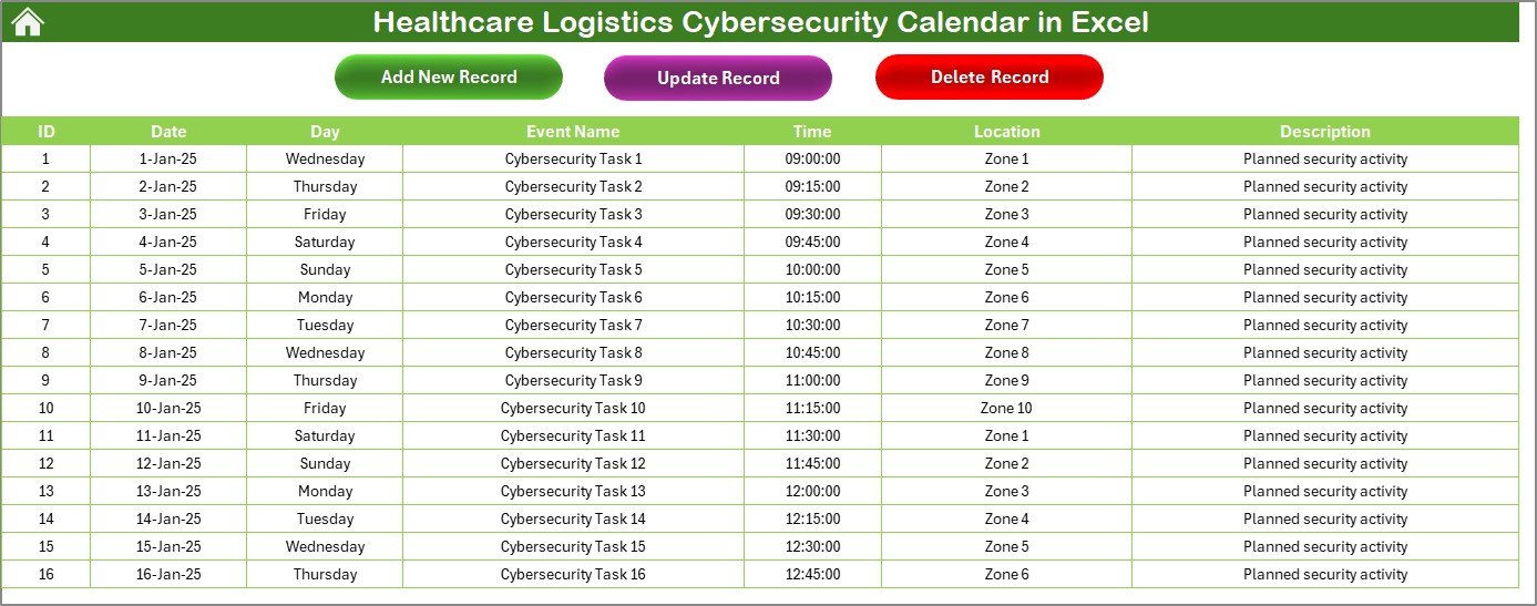 To prevent these risks, you need a structured, reliable, and easy-to-use system that tracks cybersecurity events throughout the year. That’s exactly what the Healthcare Logistics Cybersecurity Calendar in Excel is designed for.