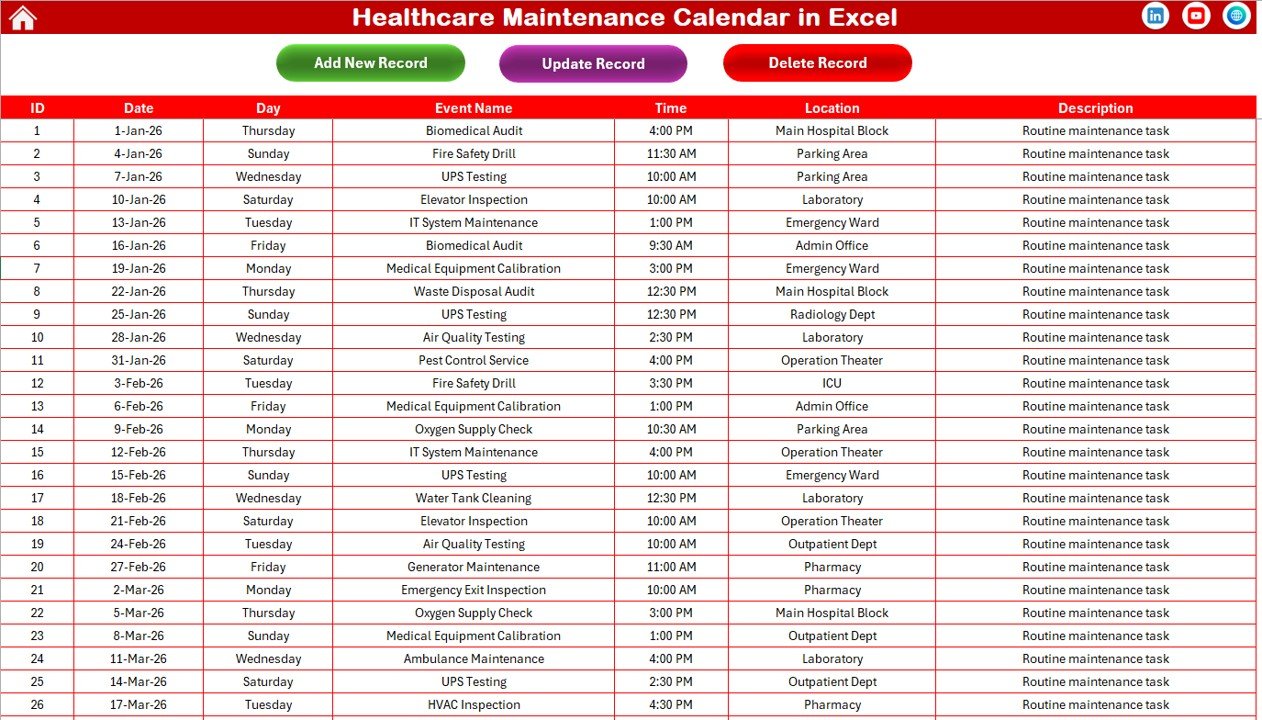 If operational efficiency, compliance control, and structured maintenance matter to your organization — this Healthcare Maintenance Calendar in Excel becomes an essential management tool.