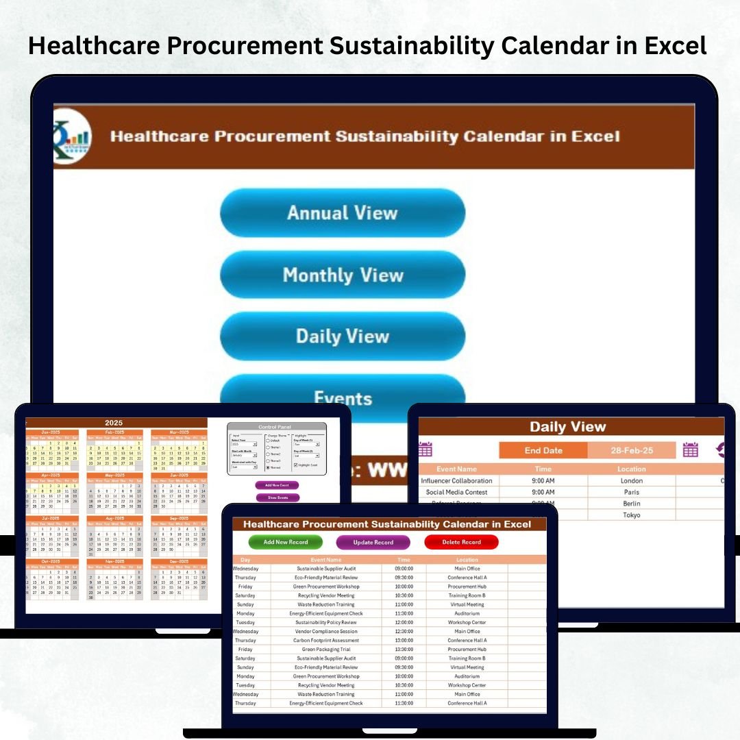 Planning sustainable procurement in healthcare requires structure, clarity, and consistency. That’s exactly what the Healthcare Procurement Sustainability Calendar in Excel delivers. Designed for hospitals, clinics, and healthcare procurement teams, this smart planning tool helps you organize sustainability activities, vendor meetings, audit schedules, compliance checks, and daily procurement tasks—all inside one beautiful, interactive Excel file. If your team struggles with scattered information, last-minute calendar updates, or missed deadlines, this template will completely transform the way you plan and manage procurement.