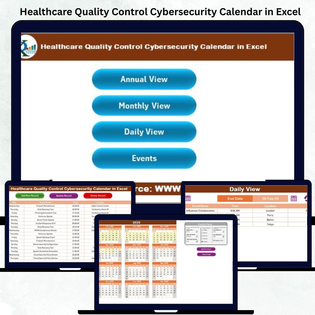 Introducing the Healthcare Quality Control Cybersecurity Calendar in Excel — a powerful, ready-to-use tool designed to simplify compliance tracking, cybersecurity management, and quality control scheduling — all inside one interactive Excel file. 🩺💻