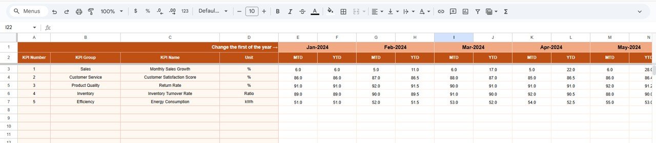 This sheet captures last year’s KPI data.