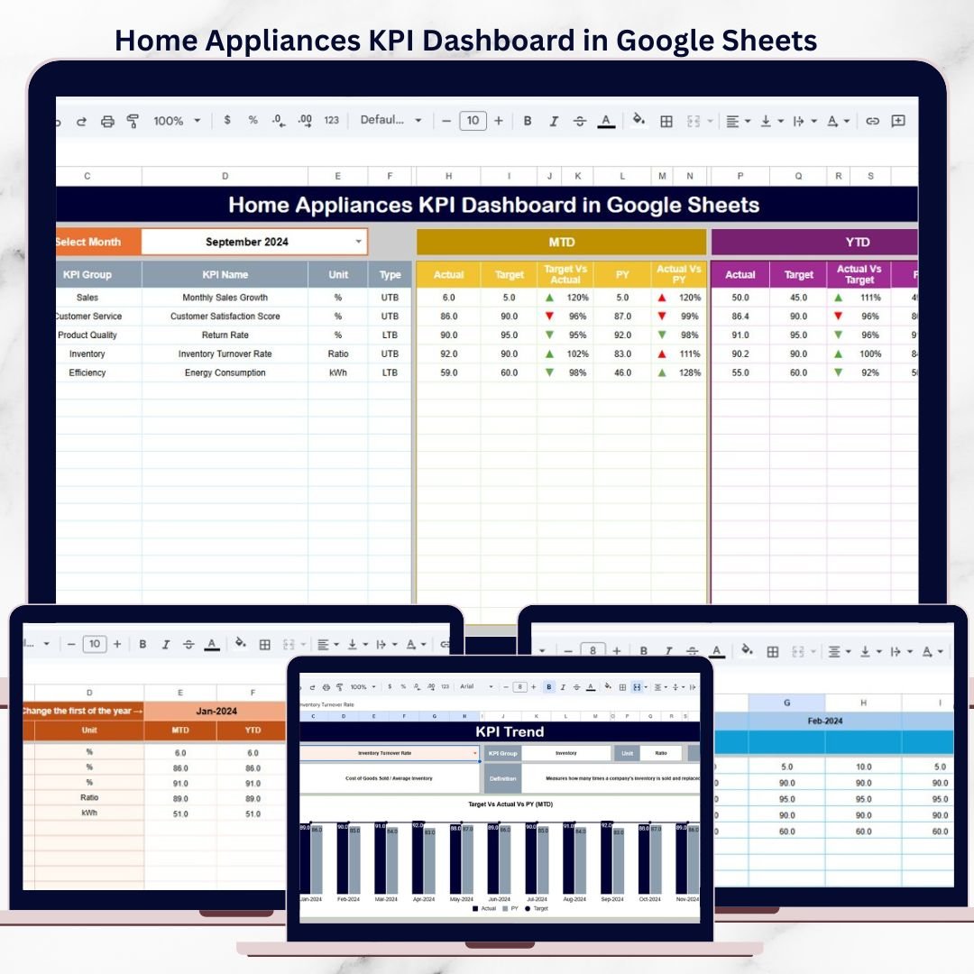 Home Appliances KPI Dashboard in Google SheetsHome Appliances KPI Dashboard in Google Sheets