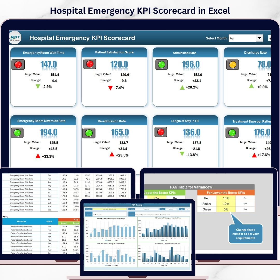 With its intuitive layout, flexible data input, and powerful visualizations, the Hospital Emergency KPI Scorecard is a must-have tool for anyone aiming to elevate emergency healthcare performance.