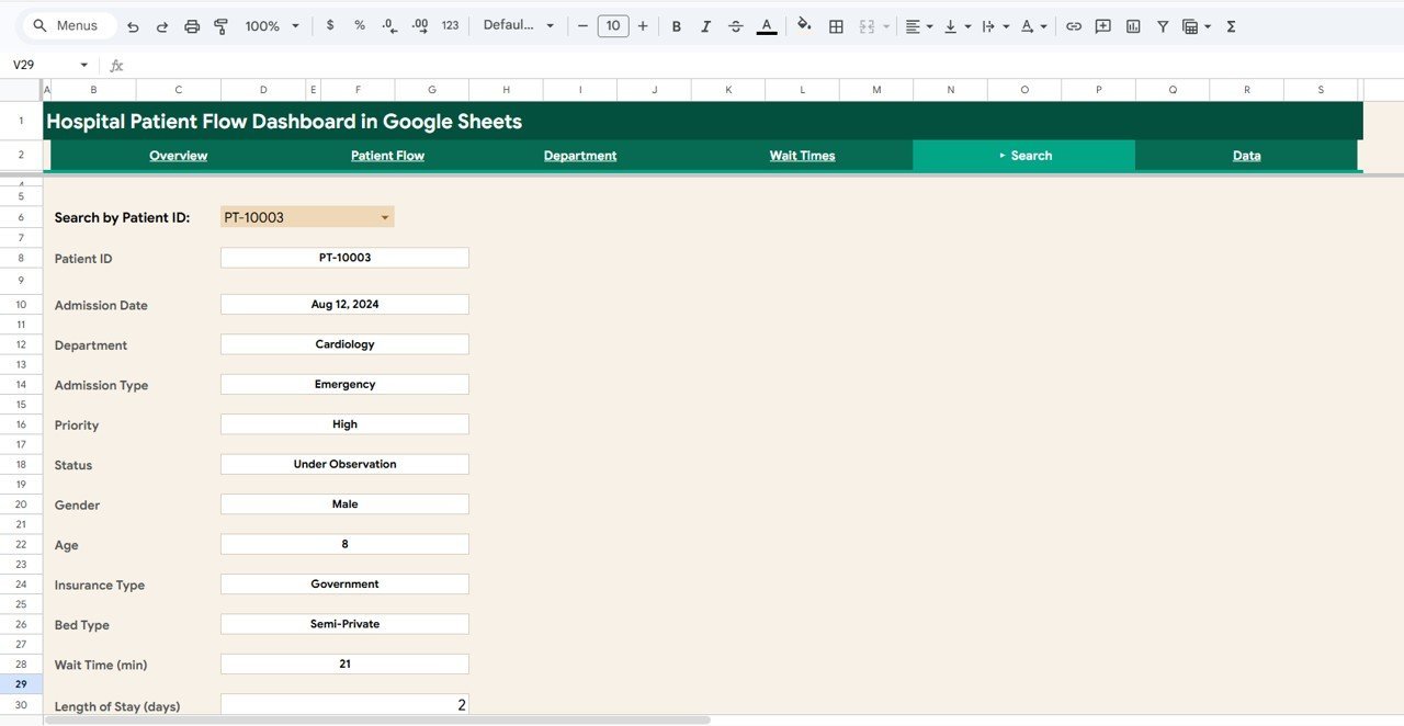 🔑 Key Features of Hospital Patient Flow Dashboard in Google Sheets