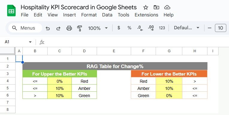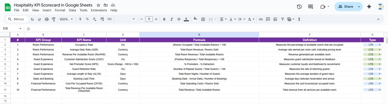 🚀 Key Features of Hospitality KPI Scorecard in Google Sheets