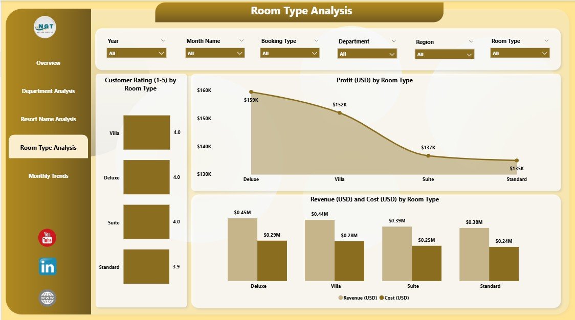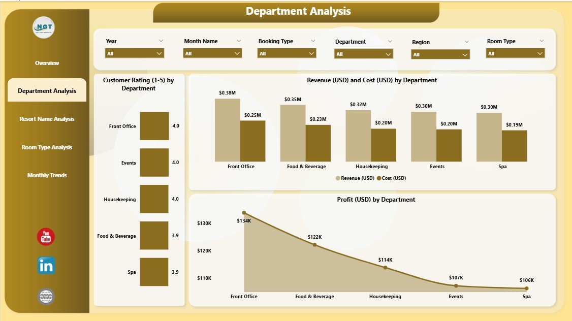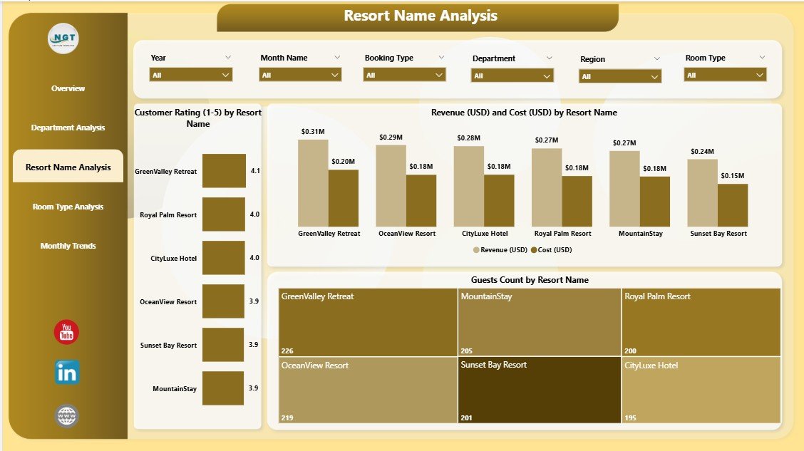 ✅ 5 Interactive Pages: Overview, Department, Resort, Room Type, and Monthly Trends.