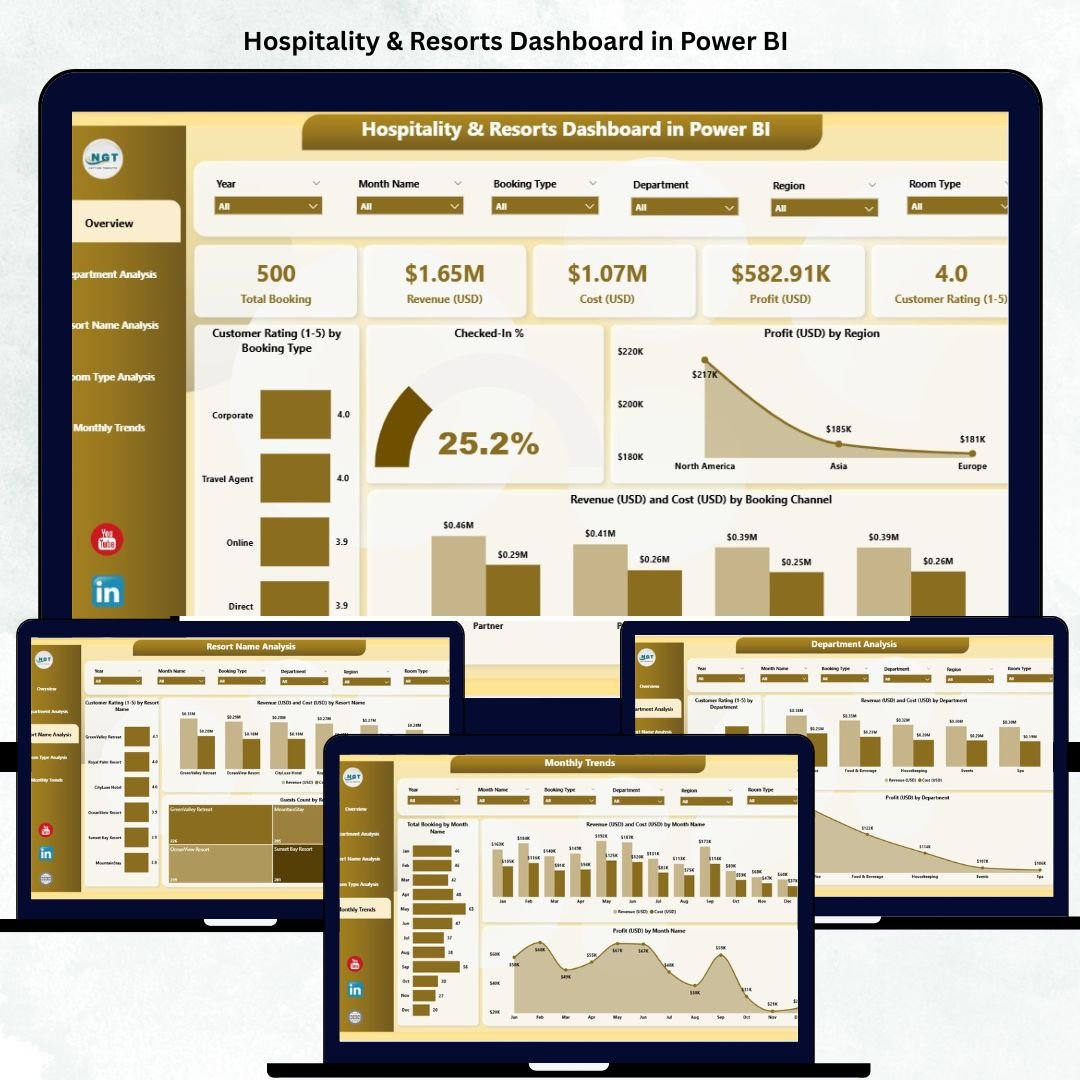 Built entirely in Microsoft Power BI, this interactive dashboard transforms scattered operational data into actionable insights. Whether you manage boutique hotels or global resort chains, you’ll gain a panoramic view of your business — from revenue and occupancy rates to profitability and guest ratings — all in real time.