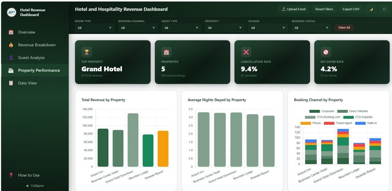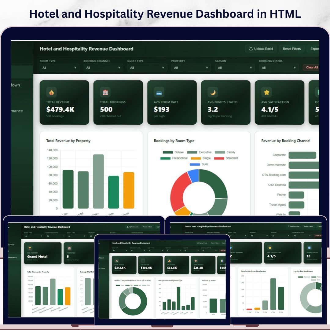 📌 Browser-Based — No Software Needed – This dashboard runs entirely inside your web browser. No need to install Excel, Power BI, or any other software. Just open the HTML file and you are ready to analyze your hotel performance.