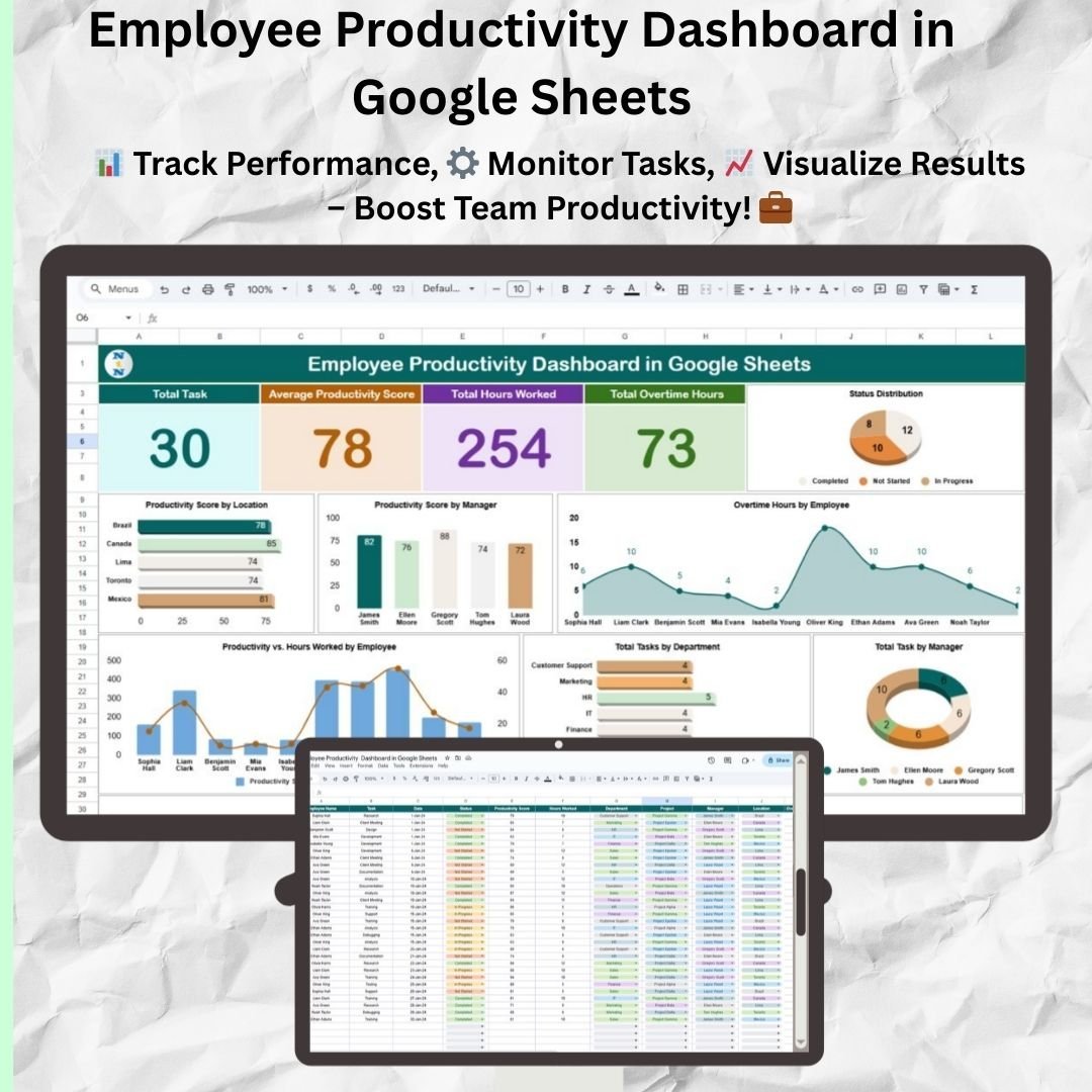 10. Employee Productivity Dashboard in Google Sheets (Google Sheets)