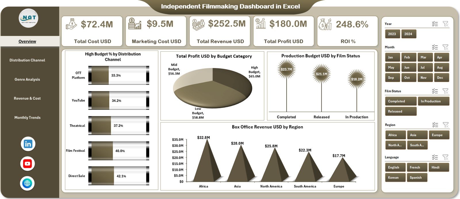 🔑 Key Features of Independent Filmmaking Dashboard in Excel