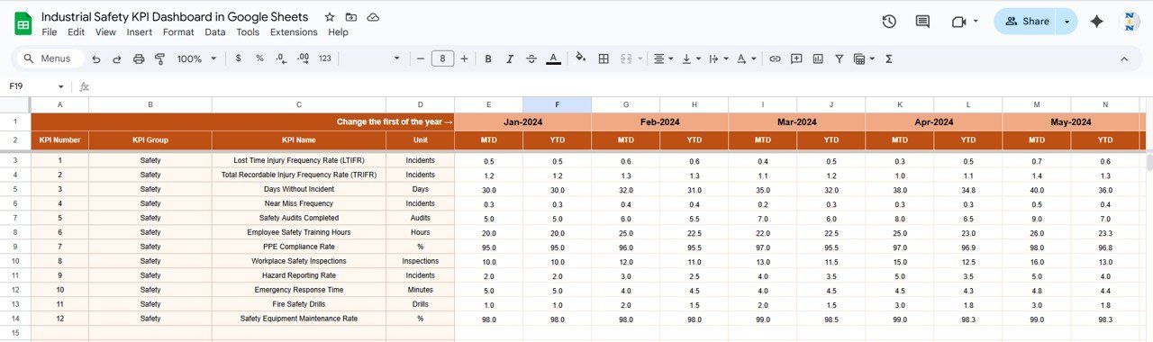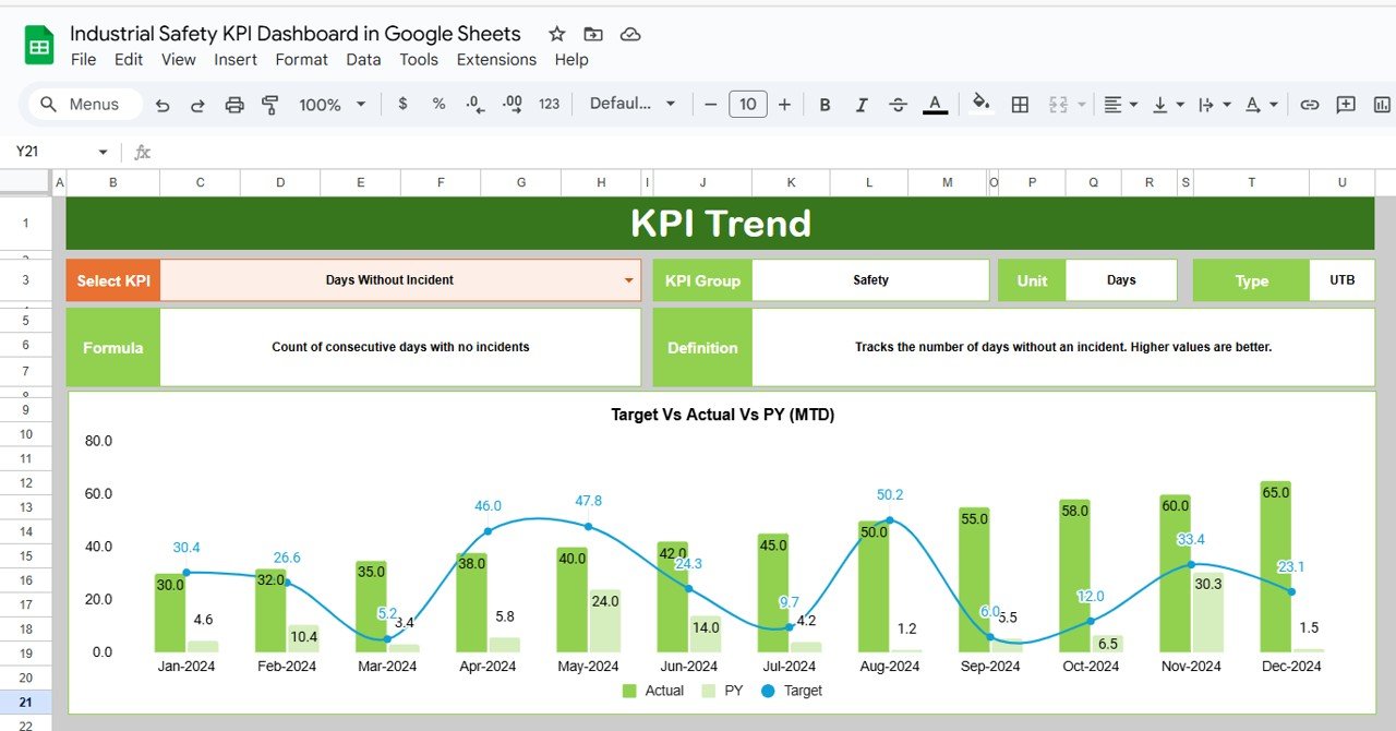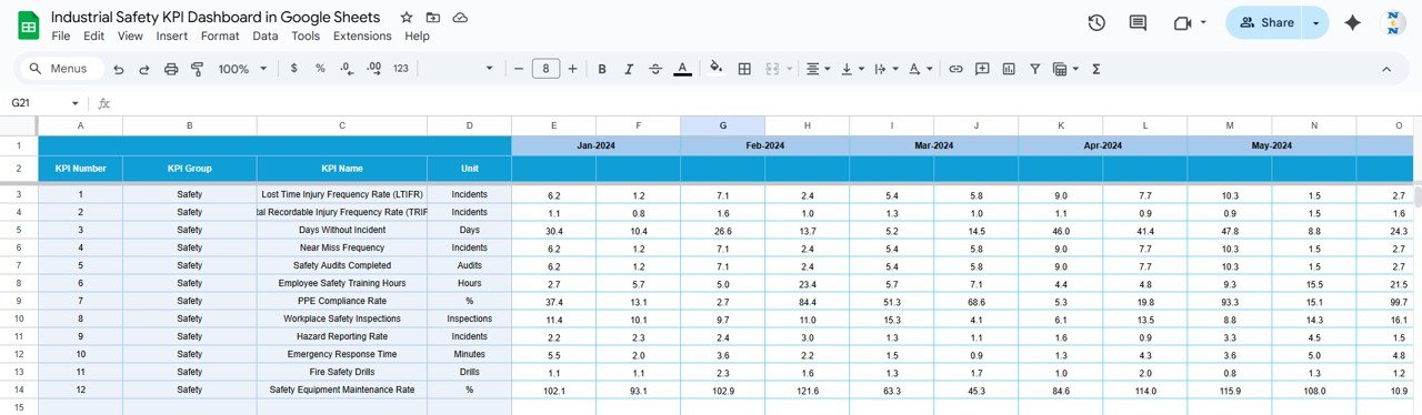🔑 Key Features of the Industrial Safety KPI Dashboard in Google Sheets