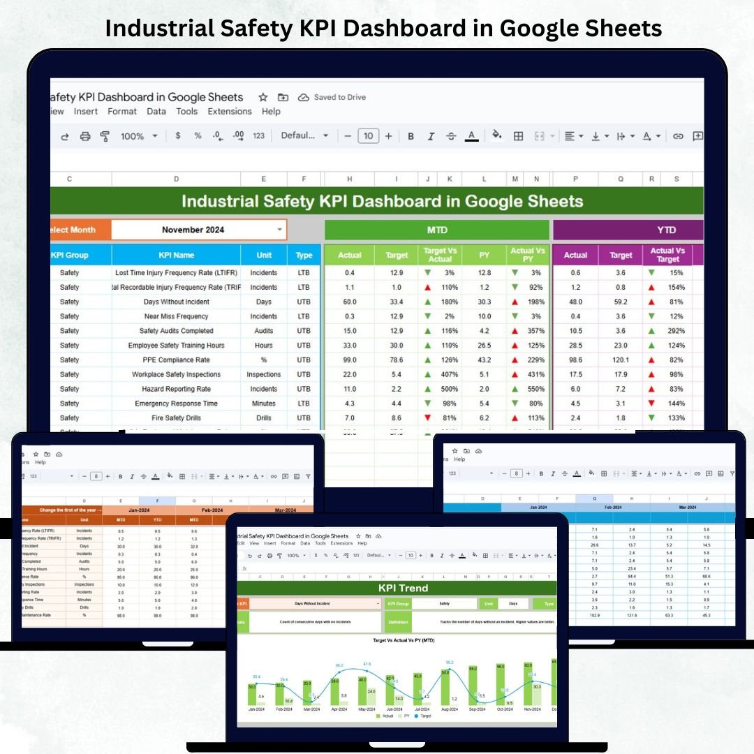 In today’s fast-paced industrial world, safety is more than a compliance requirement — it’s a key measure of organizational excellence. The Industrial Safety KPI Dashboard in Google Sheets is a ready-to-use, automated tool that enables safety professionals and operations leaders to monitor, analyze, and improve workplace safety metrics in real time. 🦺📊