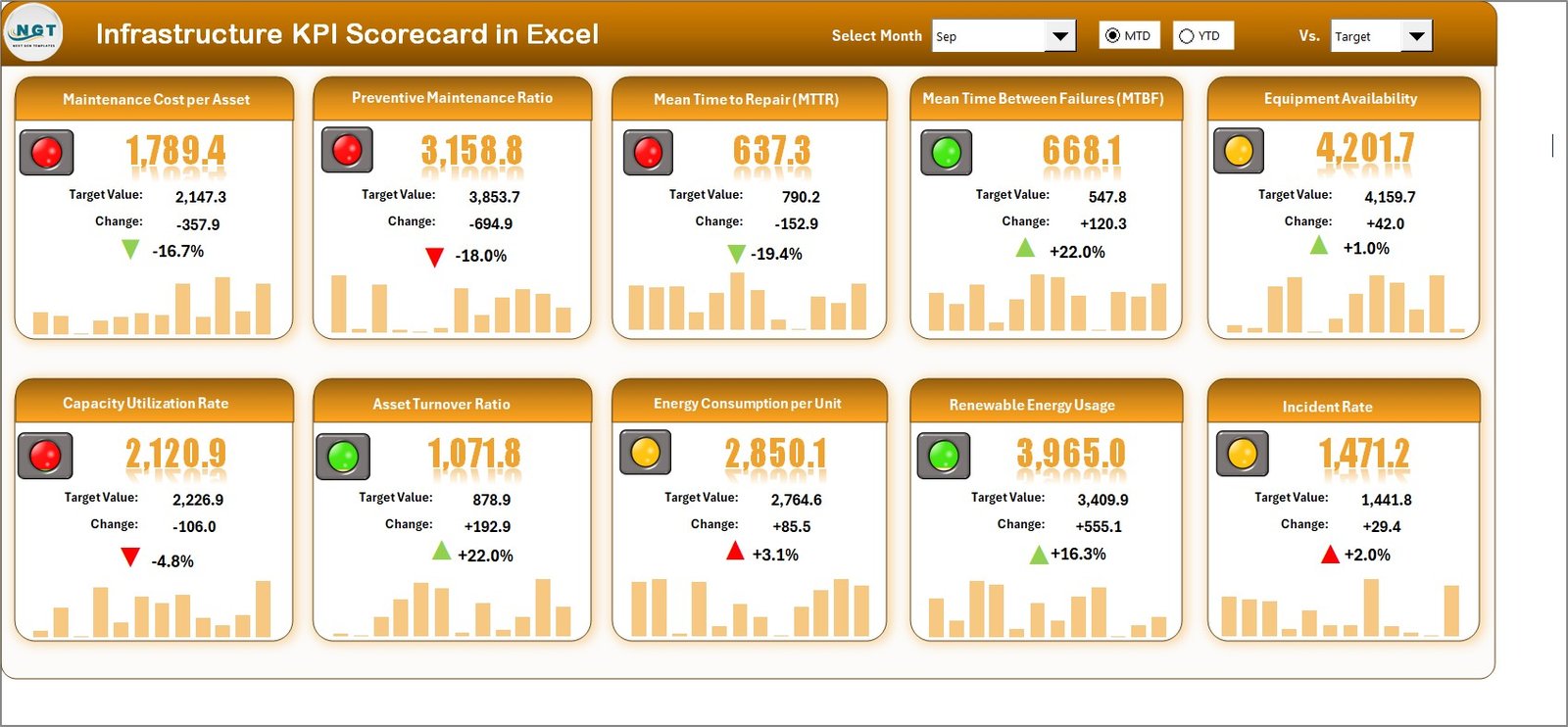 ⚙️ Key Features of the Infrastructure KPI Scorecard in Excel