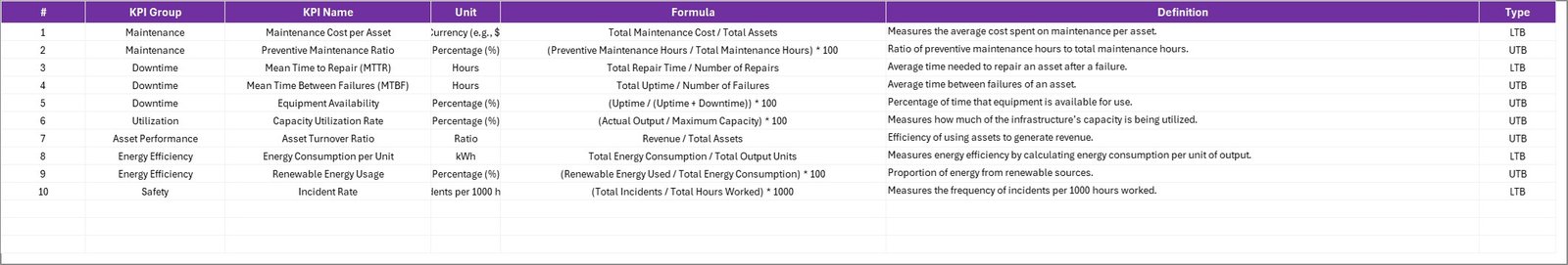 🧭 How to Use the Infrastructure KPI Scorecard in Excel