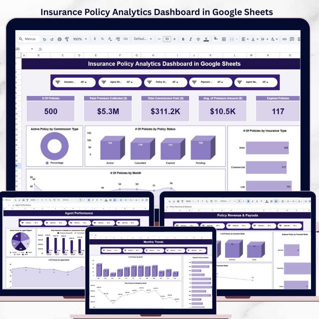 Insurance Policy Analytics Dashboard in Google SheetsInsurance Policy Analytics Dashboard in Google Sheets
