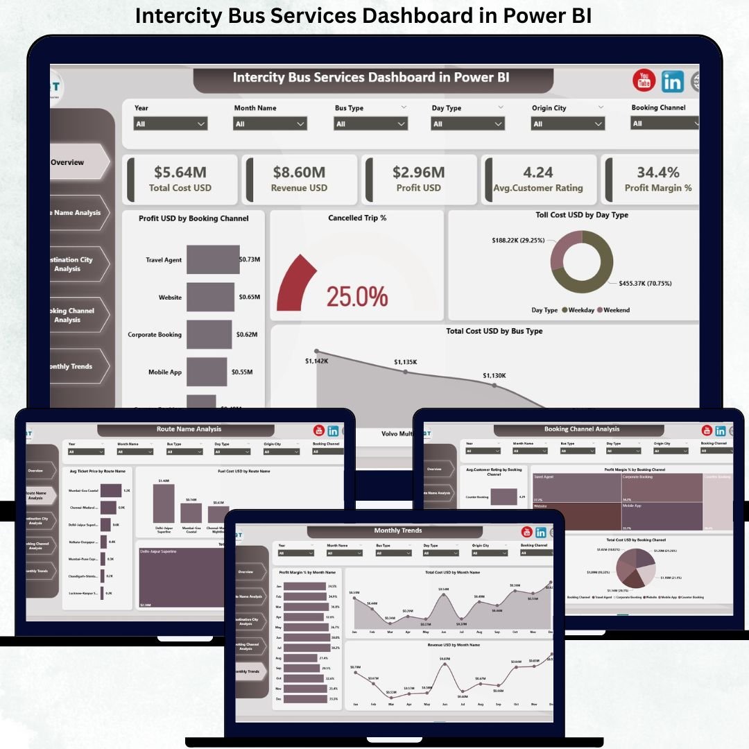 Running intercity bus operations is no longer just about moving passengers from one city to another. Intercity Bus Services Dashboard in Power BI Today, operators must carefully balance fuel costs, toll expenses, route profitability, booking channels, cancellations, and customer satisfaction—all while staying competitive in a margin-driven market. Unfortunately, when data sits in disconnected spreadsheets or manual reports, decisions become slow, reactive, and costly.