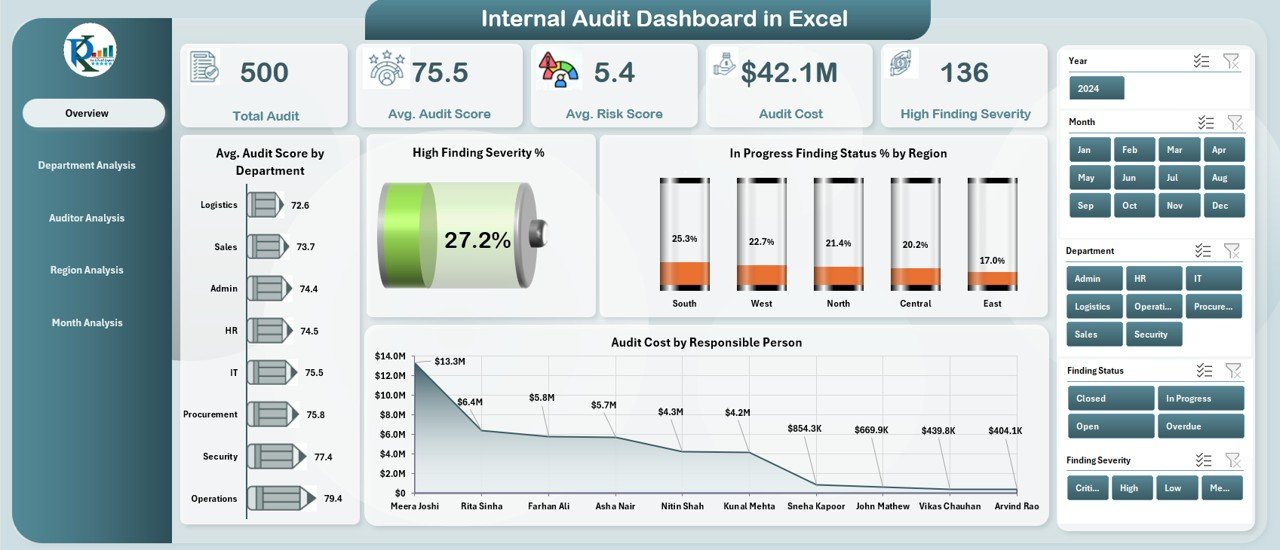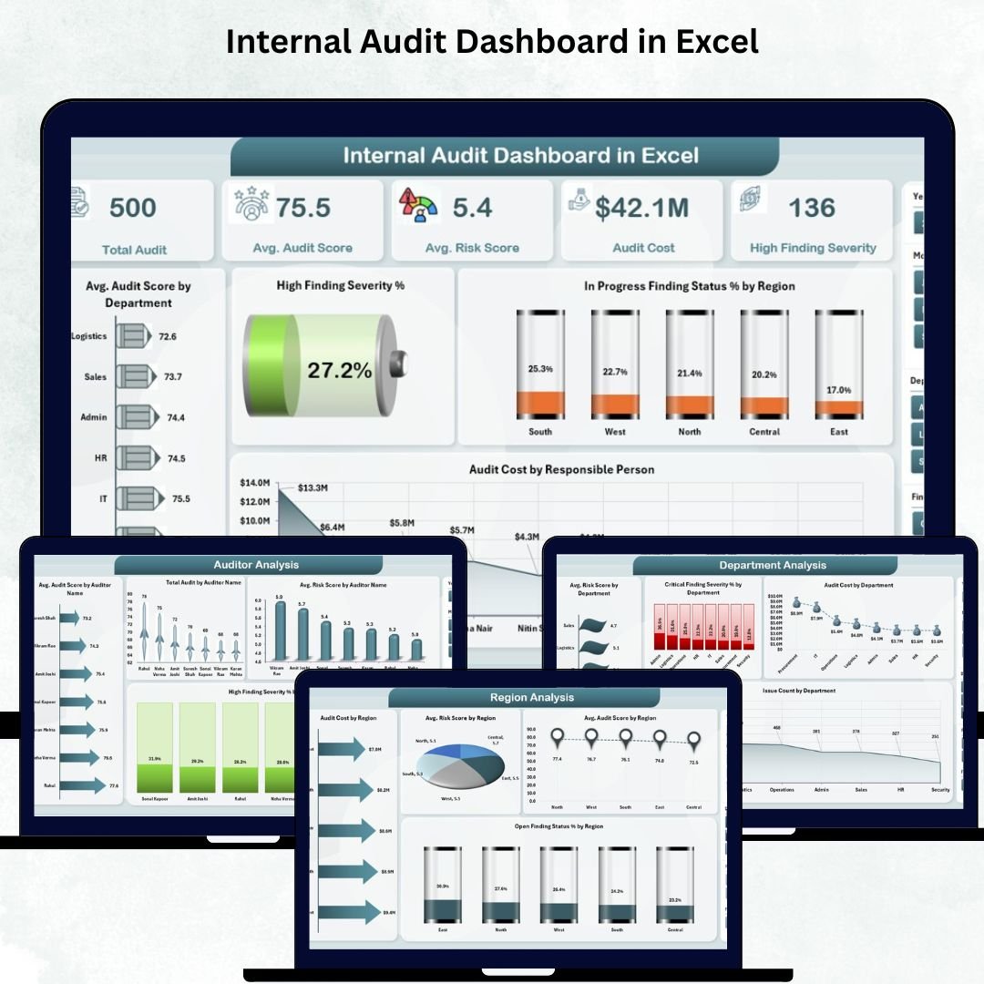Internal Audit Dashboard are essential for strengthening internal controls, improving processes, and reducing organizational risk. But when audit information sits inside scattered spreadsheets, emails, and manual reports, leaders struggle to understand what’s happening. Tracking audit progress, analyzing severity levels, identifying high-risk areas, and reviewing audit costs becomes slow and confusing. To solve these challenges, we created the Internal Audit Dashboard in Excel — a powerful, visual, and interactive audit performance tracking tool designed for audit teams, compliance managers, and leadership.