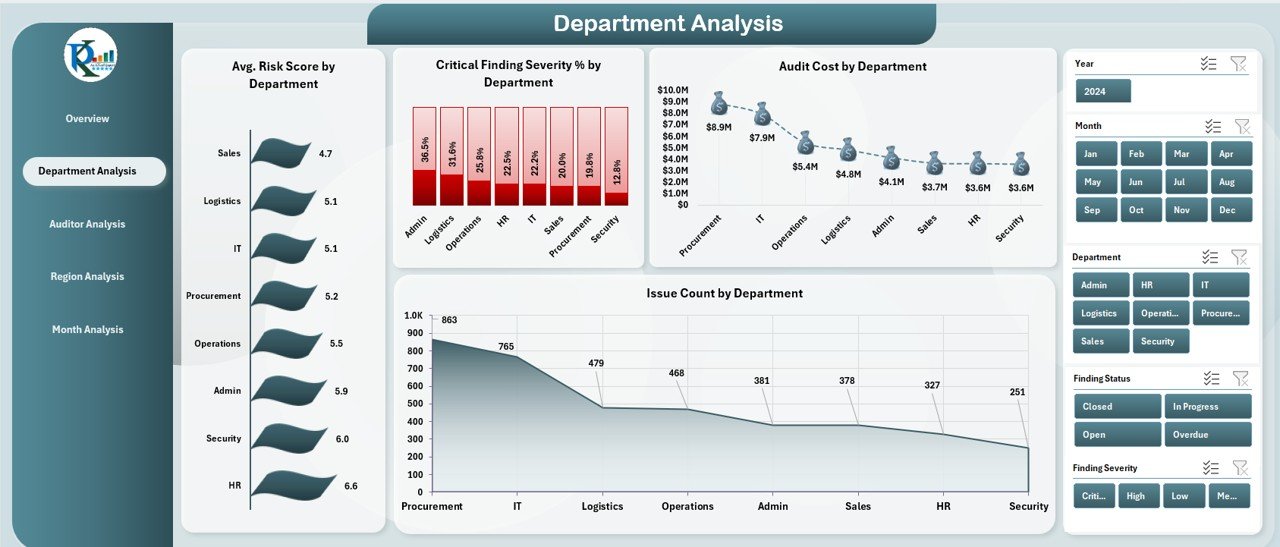 5️⃣ Analyze Department, Auditor & Region Pages