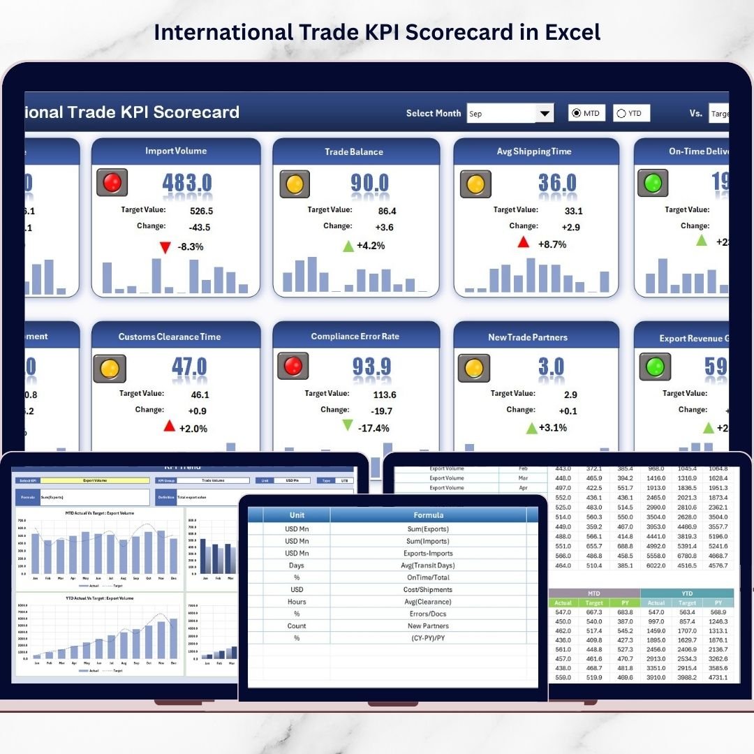 📦 What’s Inside the International Trade KPI Scorecard in Excel