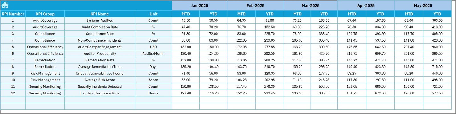 📦 What’s Inside the IT Security Auditing KPI Dashboard in Excel