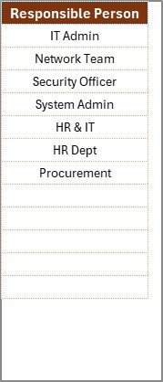 Assign Responsibilities – Use drop-downs from the List Sheet to assign team members.