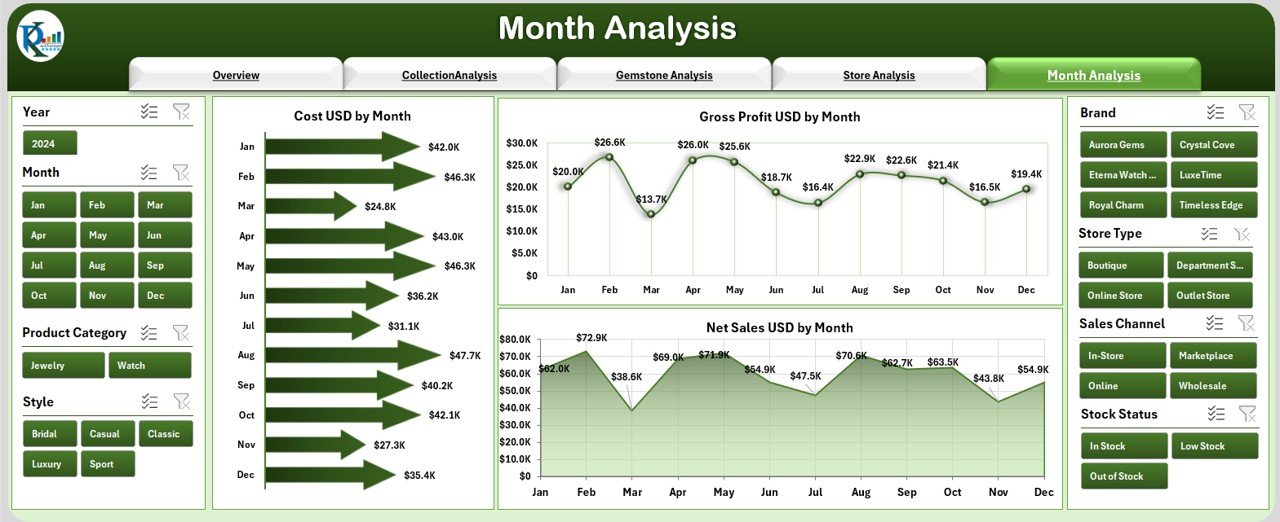 ✨ Easy Page Navigation – Jump between Overview, Collection Analysis, Gemstone Analysis, Store Analysis, and Month Analysis with a single click.