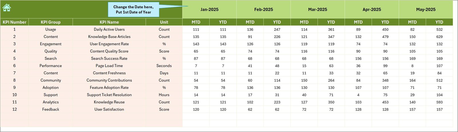 Knowledge Hubs KPI Dashboard in Excel