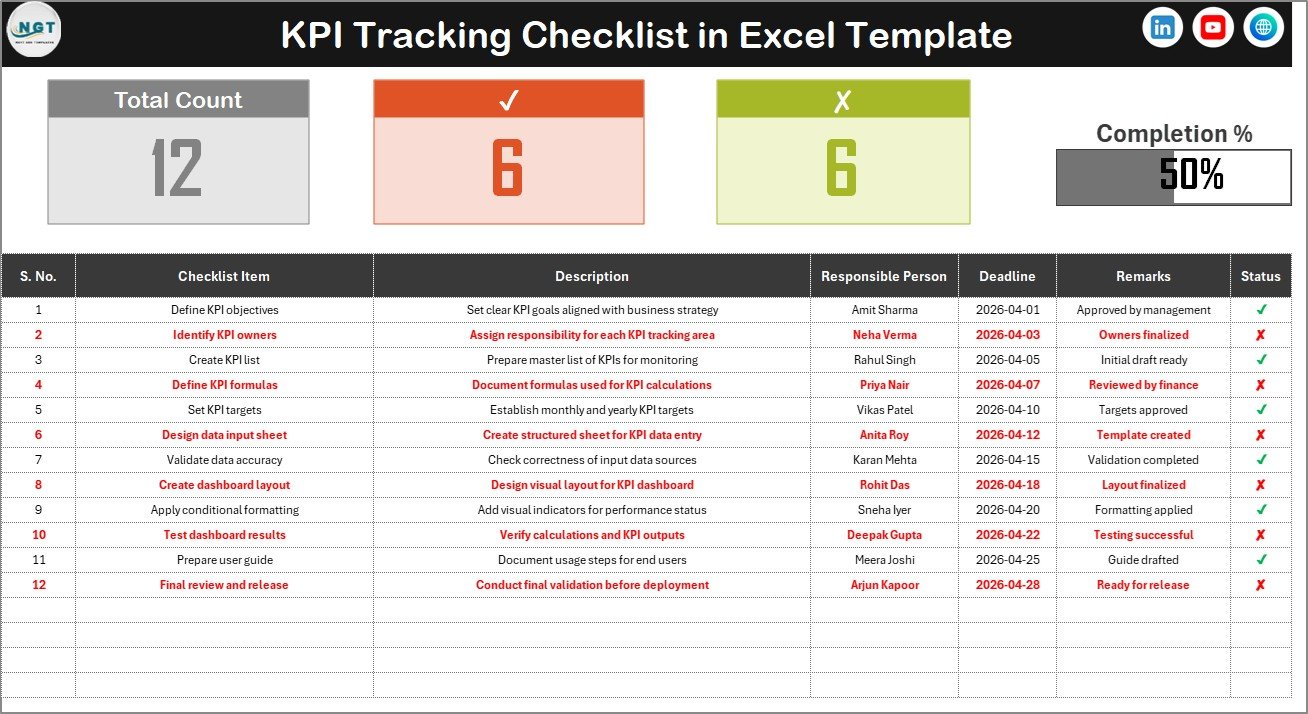 ✅ Centralized KPI Task Management – Track all KPI-related activities in one organized checklist.