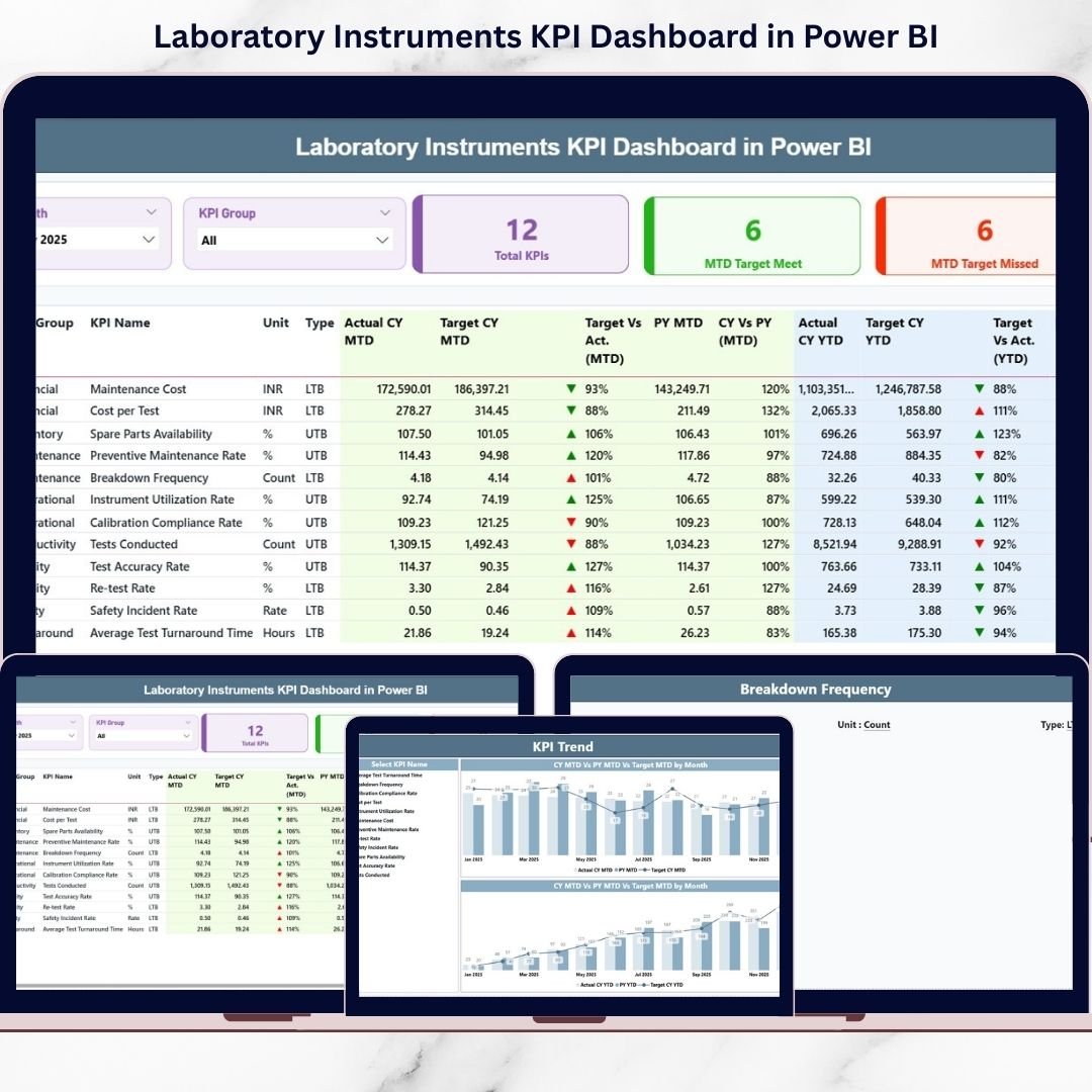📦 What’s Inside the Laboratory Instruments KPI Dashboard in Power BI
