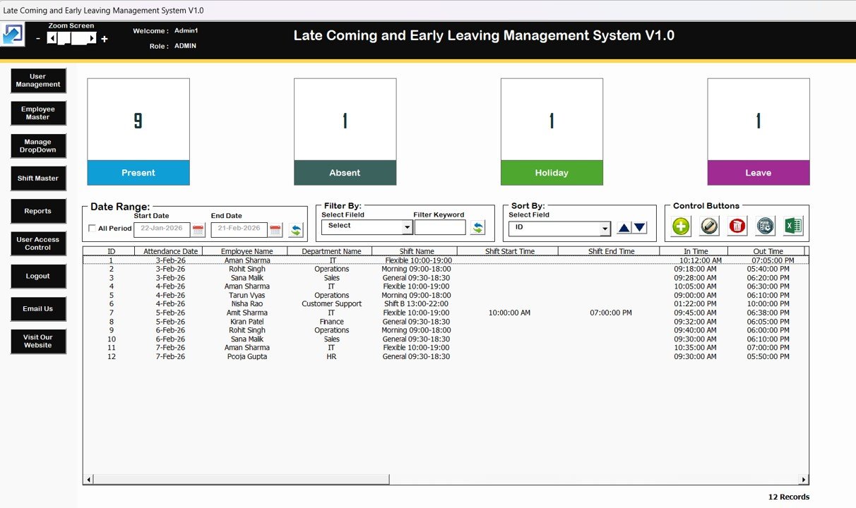 That is exactly why the Late Coming and Early Leaving Management System V1.0 in Excel VBA is the perfect solution for modern workplaces.