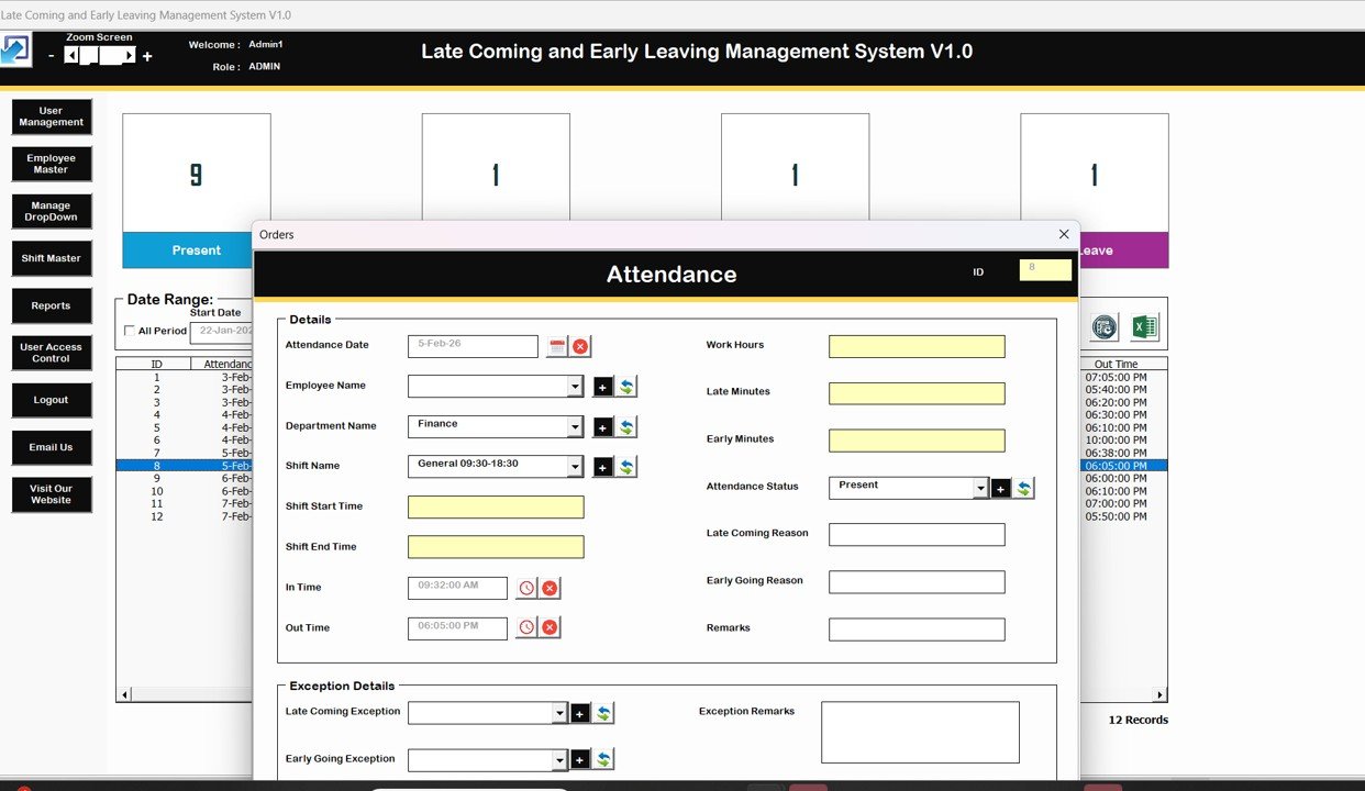 📦 What’s Inside the Late Coming and Early Leaving Management System V1.0