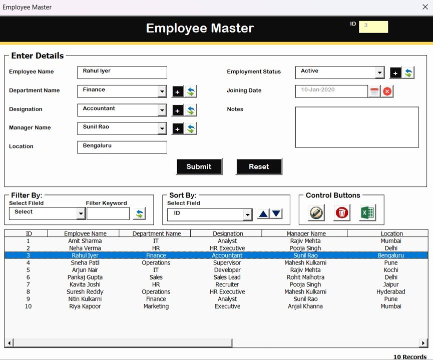 ✅ Fully Offline System – Works without internet inside Microsoft Excel.