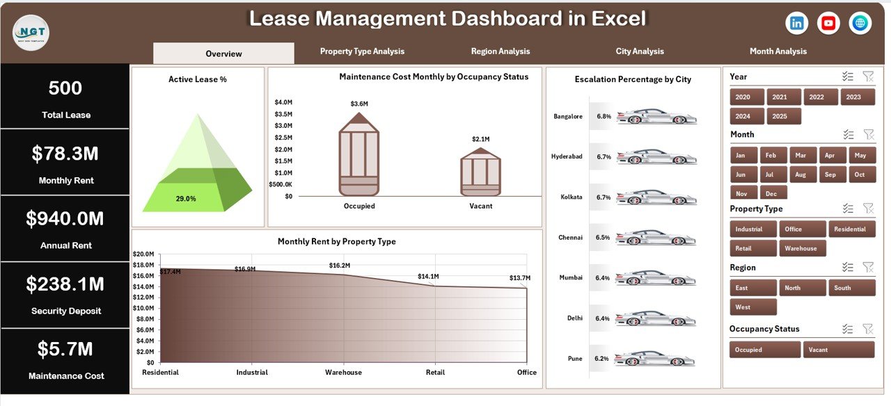 📦 What’s Inside the Lease Management Dashboard in Excel